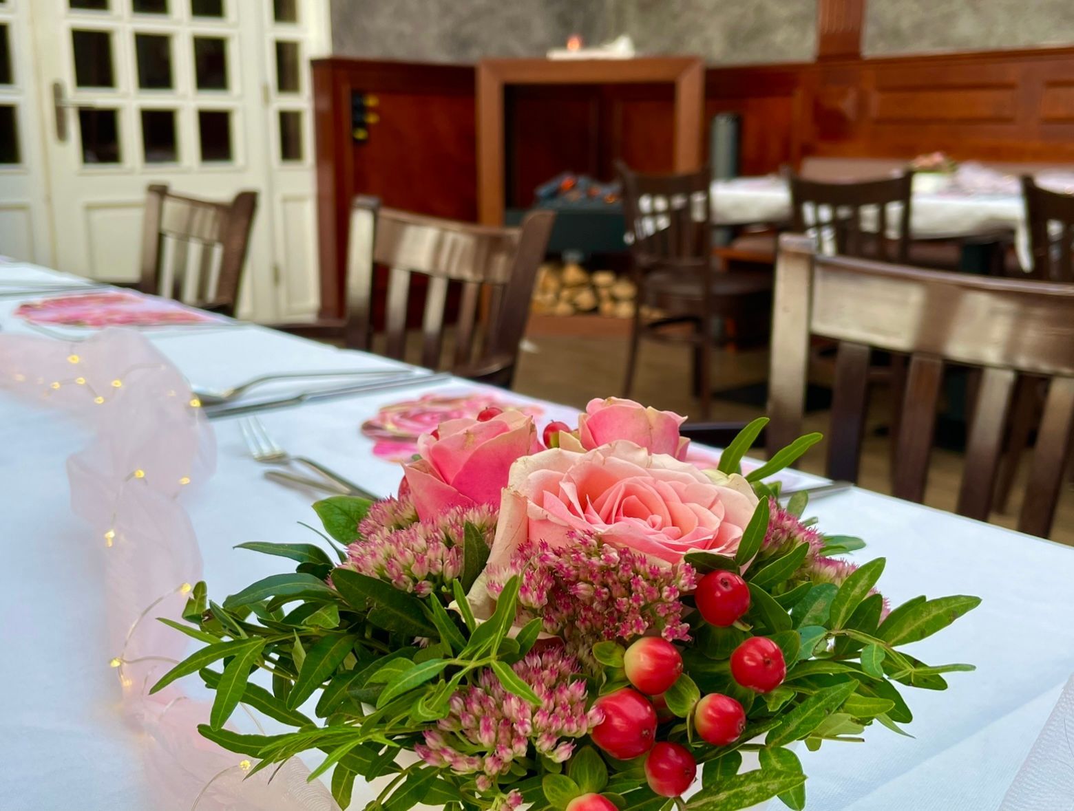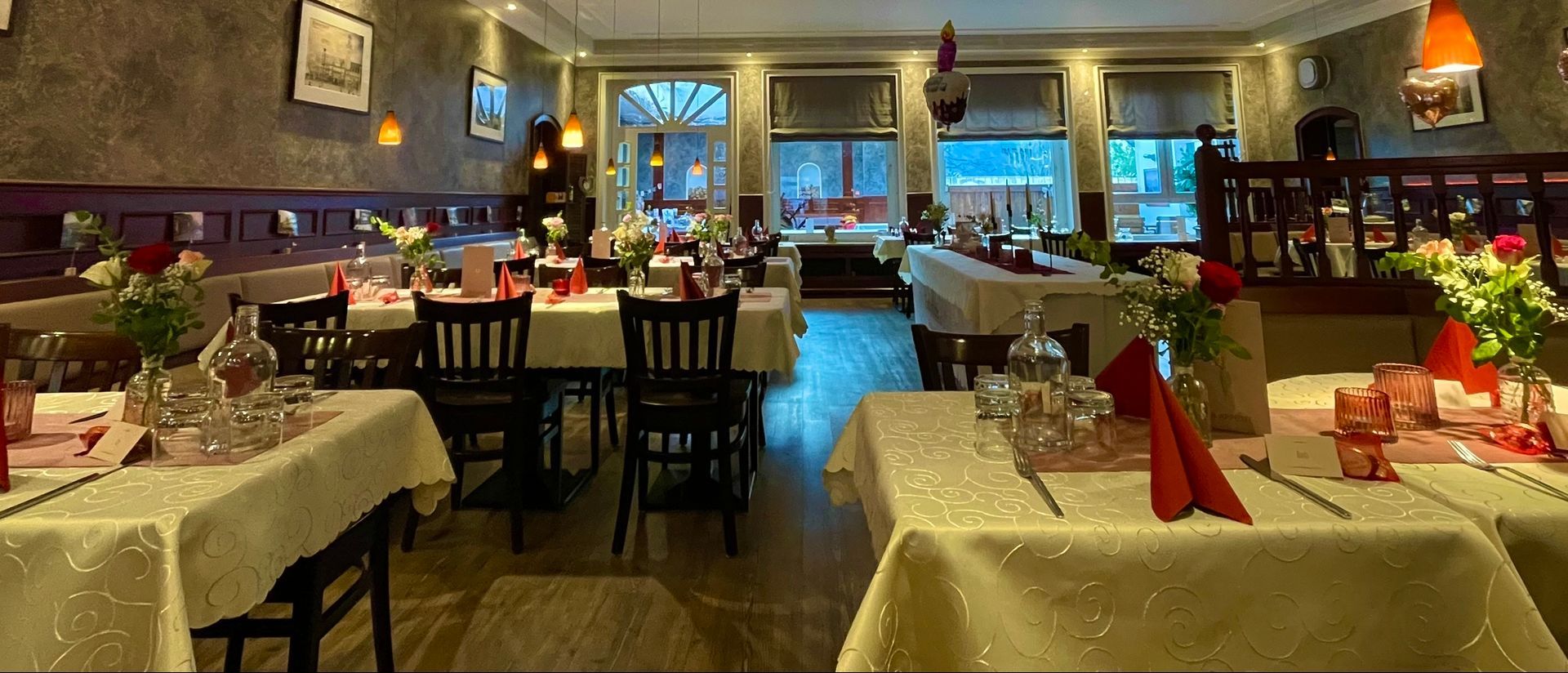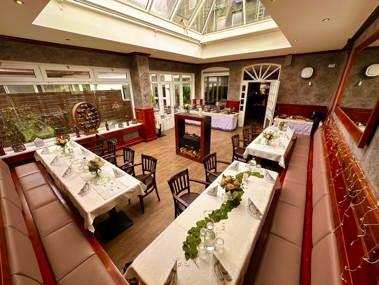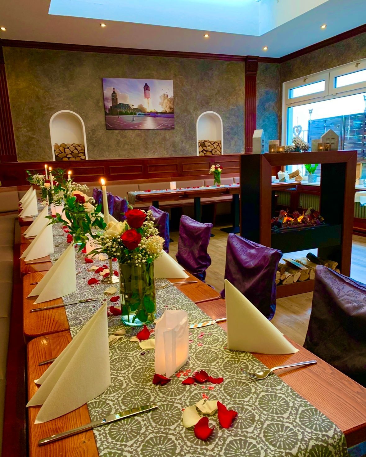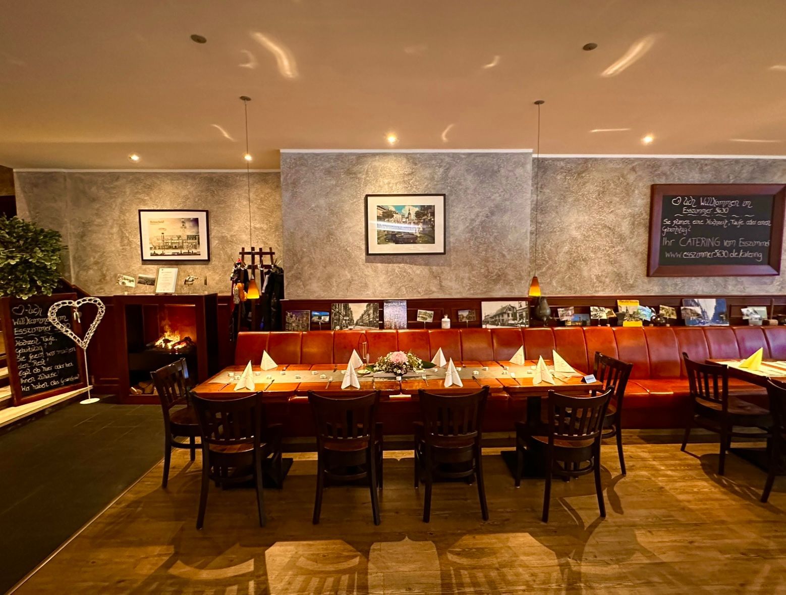 könnt Ihr exklusiv das gesamte Restaurant, inklusive Kaminzimmer & Terrasse mieten.